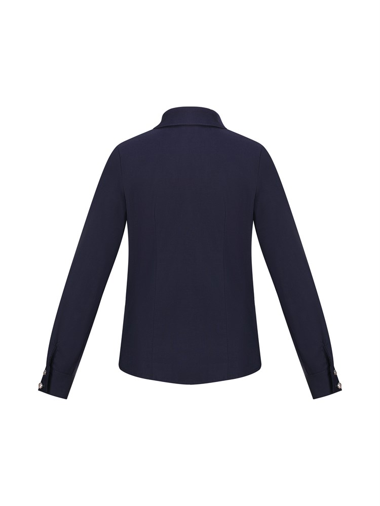 Блузка с длинным рукавом, воротник украшен "мушкой" со стразами, застегивается на декоративные пуговицы со стразами; Состав: Хлопок - 70%, Полиэстер - 27%, Эластан - 3%