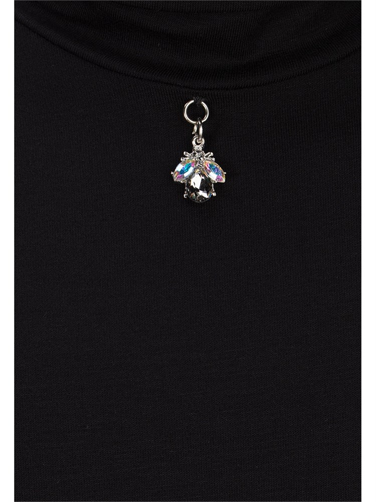 Водолазка с длинным рукавом, с элегантной декоративной подвеской в виде "мушки" со стразами на шее. Воротник-стойка; Состав: Вискоза - 95%, Эластан - 5%