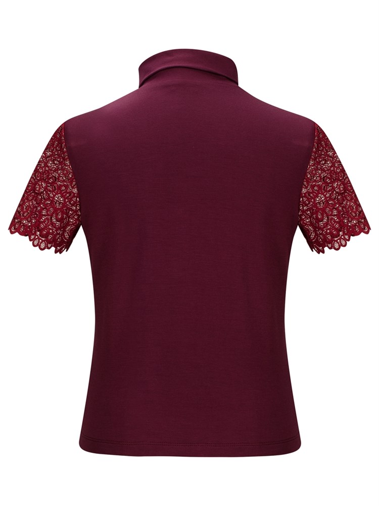 Водолазка с короткими кружевными рукавами, украшена декоративной подвеской в виде "мушки" со стразами на шее; Состав: Вискоза - 95%, Эластан - 5%