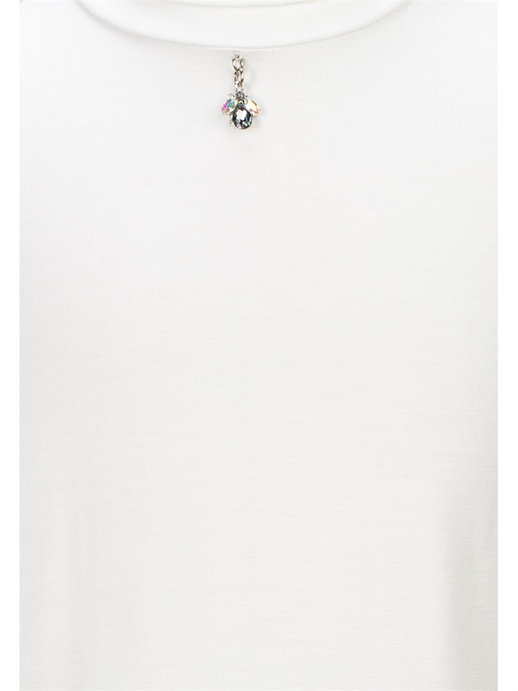 Водолазка с короткими кружевными рукавами, украшена декоративной подвеской в виде "мушки" со стразами на шее; Состав: Вискоза - 95%, Эластан - 5%