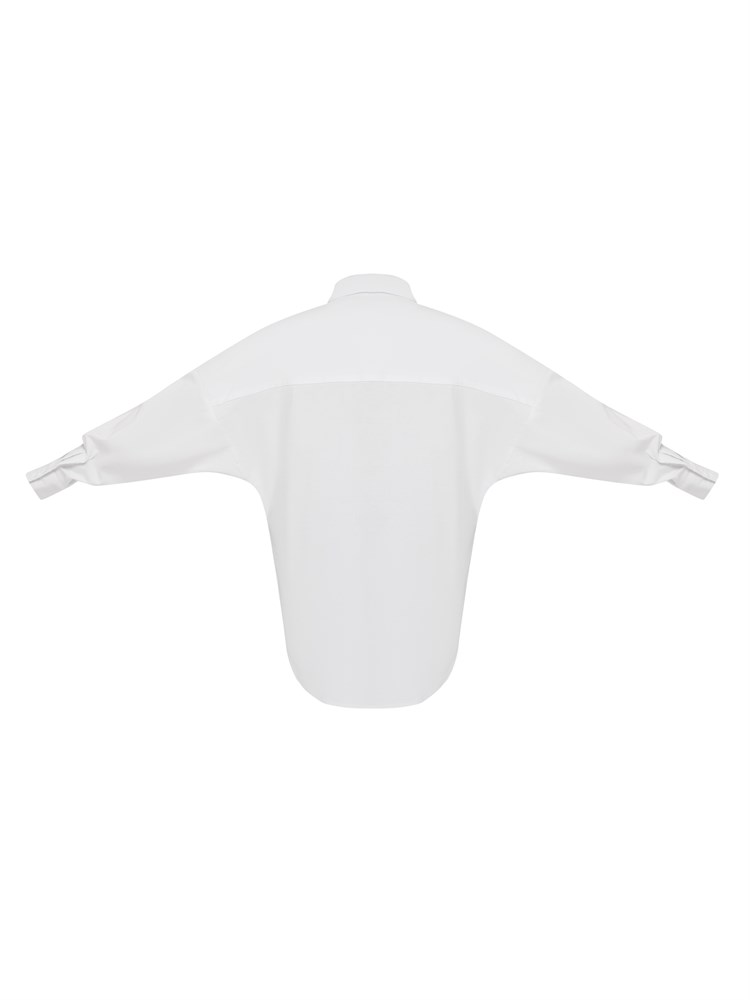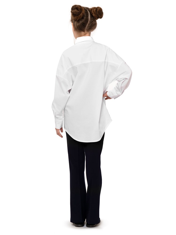 Молодежная блузка оверсайз, с карманом. Свободный крой. Модель напоминает "летучую мышь". Модная и стильная рубашка подойдет как школьная форма для детей, а также как праздничная и нарядная блузка; Состав: Хлопок - 70%, Полиэстер - 27%, Эластан - 3%.
