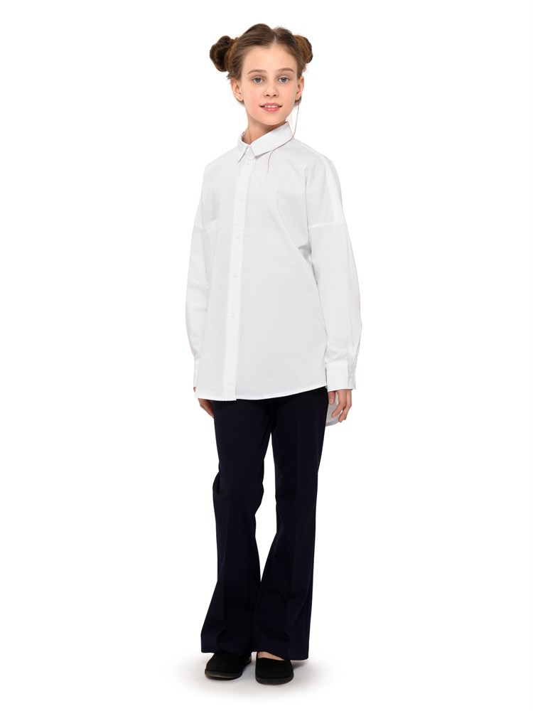 Молодежная блузка оверсайз, с карманом. Свободный крой. Модель напоминает "летучую мышь". Модная и стильная рубашка подойдет как школьная форма для детей, а также как праздничная и нарядная блузка; Состав: Хлопок - 70%, Полиэстер - 27%, Эластан - 3%.