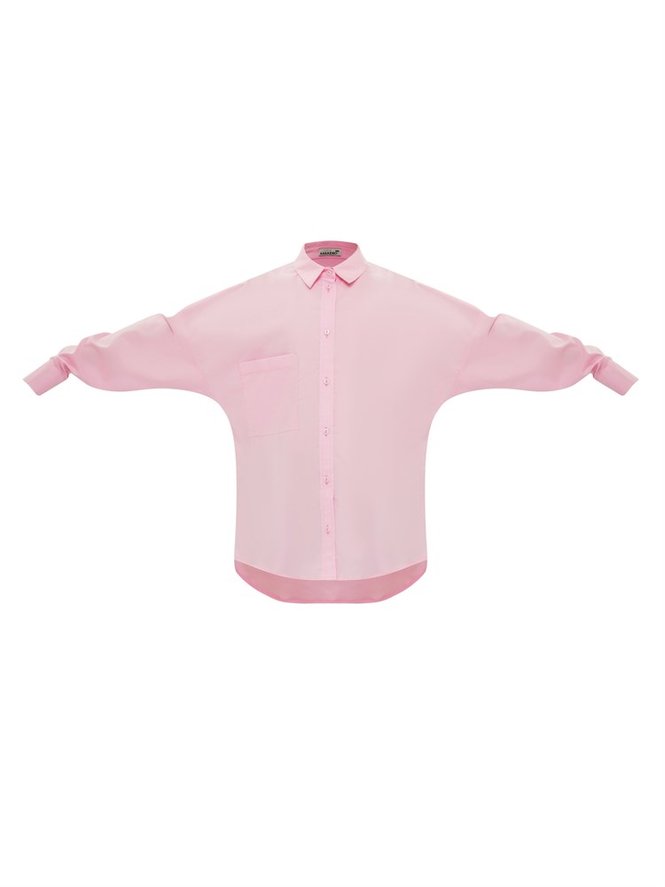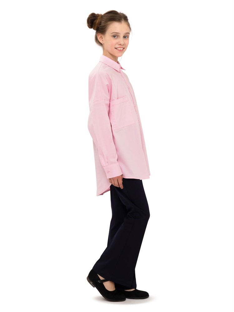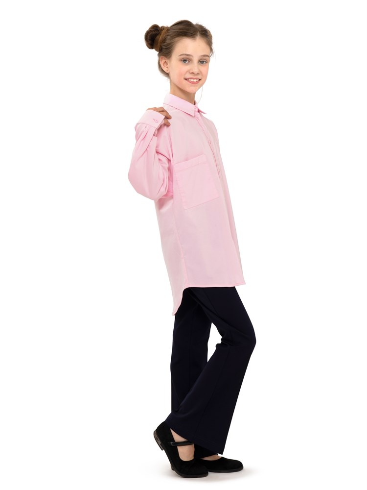 Молодежная блузка оверсайз, с карманом. Свободный крой. Модель напоминает "летучую мышь". Модная и стильная рубашка подойдет как школьная форма для детей, а также как праздничная и нарядная блузка; Состав: Хлопок - 70%, Полиэстер - 27%, Эластан - 3%.