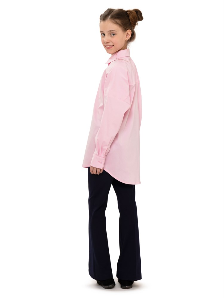 Молодежная блузка оверсайз, с карманом. Свободный крой. Модель напоминает "летучую мышь". Модная и стильная рубашка подойдет как школьная форма для детей, а также как праздничная и нарядная блузка; Состав: Хлопок - 70%, Полиэстер - 27%, Эластан - 3%.