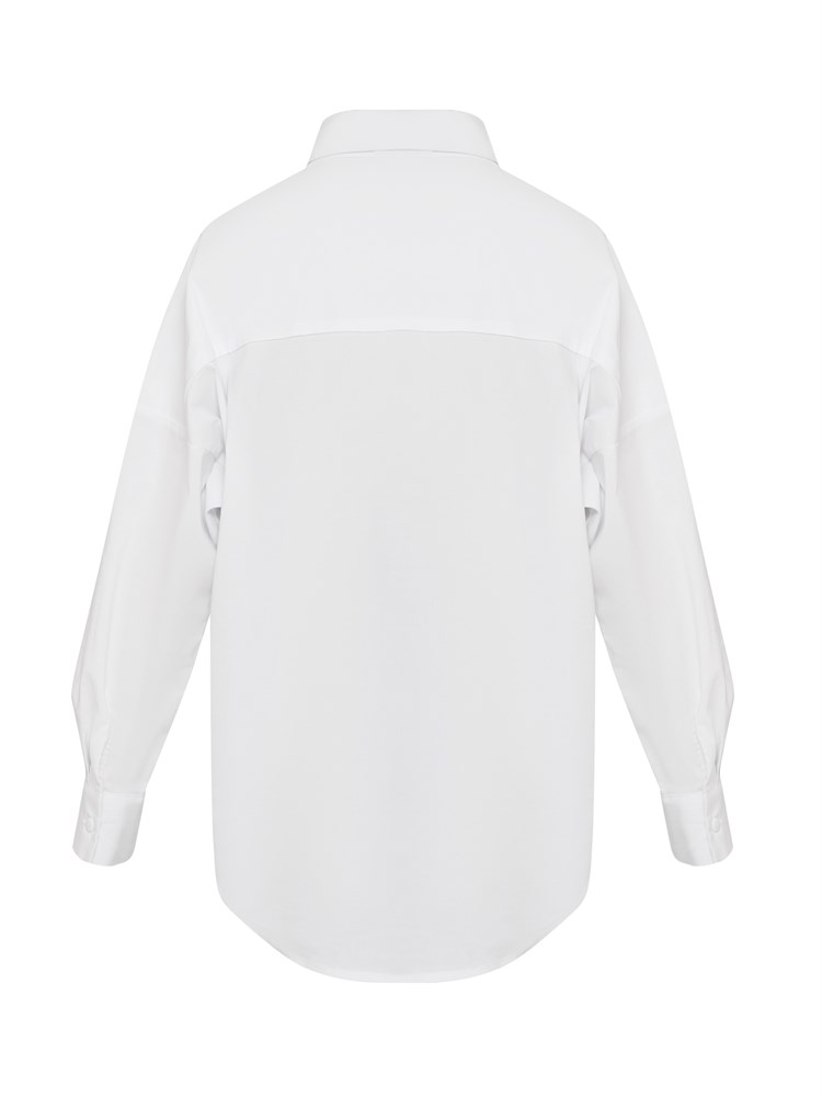 Молодежная блузка оверсайз, с карманом. Свободный крой. Модель напоминает "летучую мышь". Модная и стильная рубашка подойдет как школьная форма для детей, а также как праздничная и нарядная блузка; Состав: Хлопок - 70%, Полиэстер - 27%, Эластан - 3%.