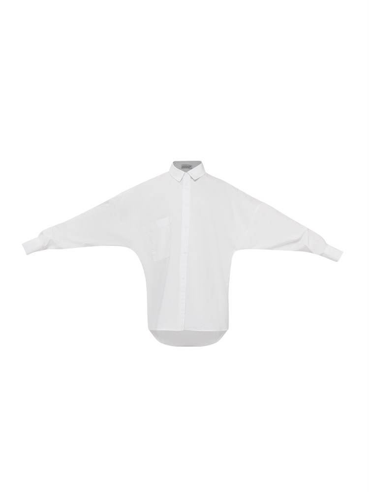 Молодежная блузка оверсайз, с карманом. Свободный крой. Модель напоминает "летучую мышь". Модная и стильная рубашка подойдет как школьная форма для детей, а также как праздничная и нарядная блузка; Состав: Хлопок - 70%, Полиэстер - 27%, Эластан - 3%.