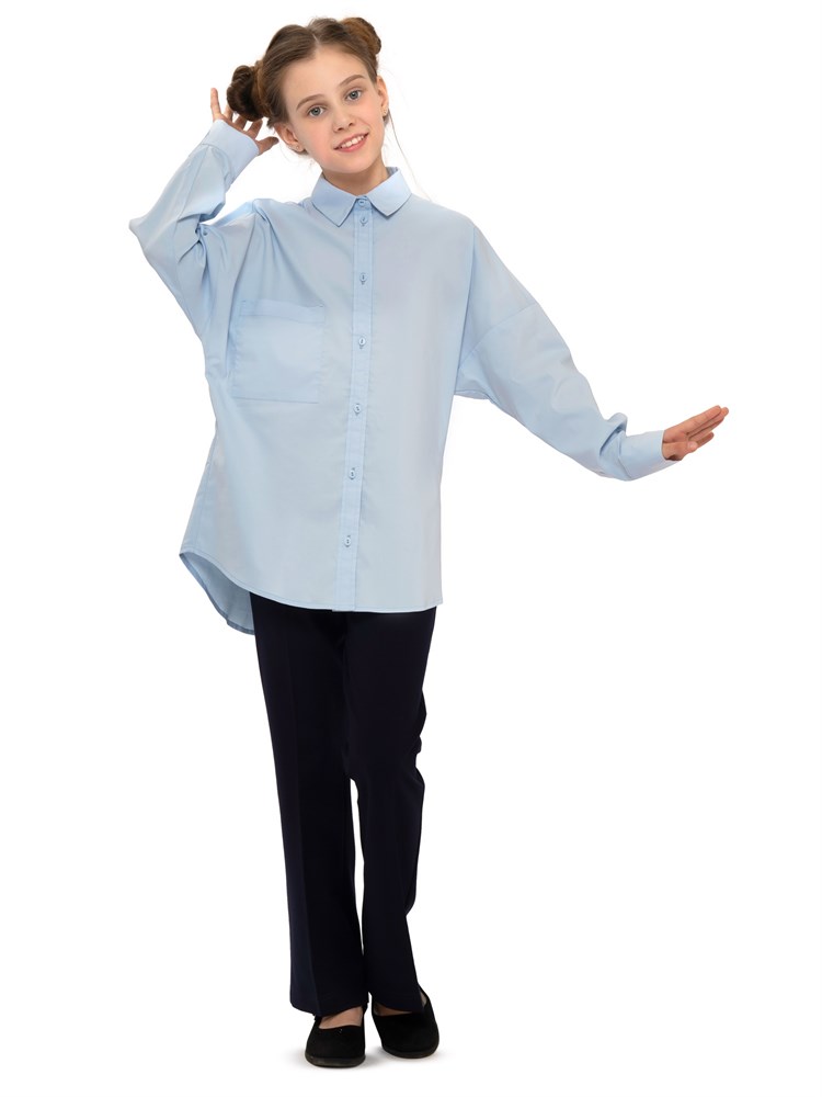 Молодежная блузка оверсайз, с карманом. Свободный крой. Модель напоминает "летучую мышь". Модная и стильная рубашка подойдет как школьная форма для детей, а также как праздничная и нарядная блузка; Состав: Хлопок - 70%, Полиэстер - 27%, Эластан - 3%.