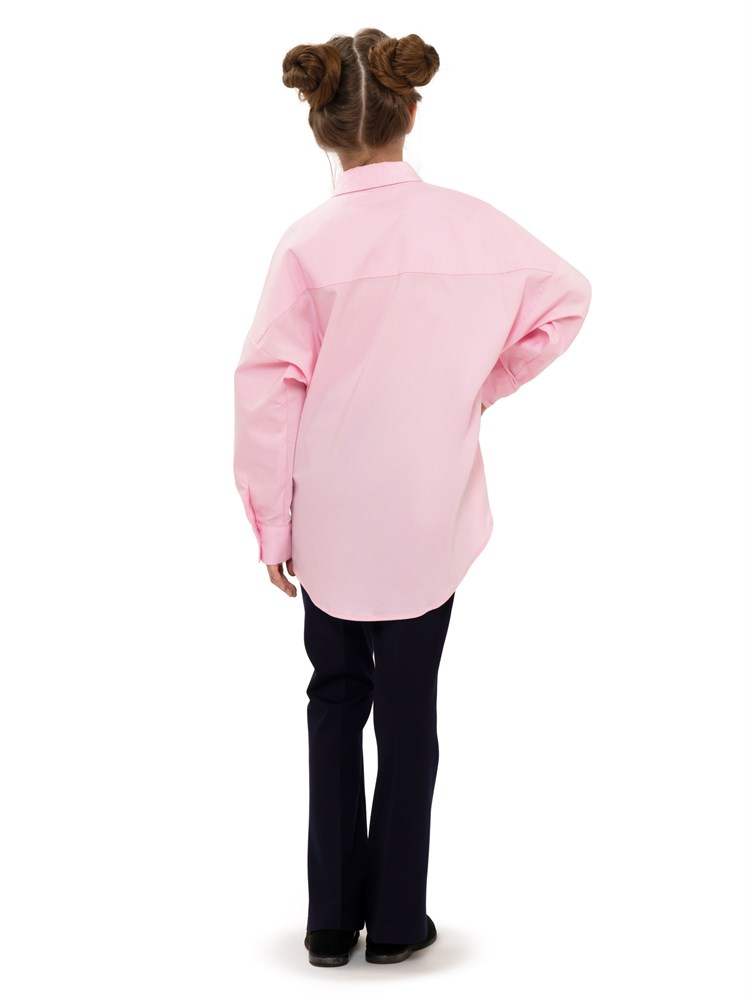 Молодежная блузка оверсайз, с карманом. Свободный крой. Модель напоминает "летучую мышь". Модная и стильная рубашка подойдет как школьная форма для детей, а также как праздничная и нарядная блузка; Состав: Хлопок - 70%, Полиэстер - 27%, Эластан - 3%.