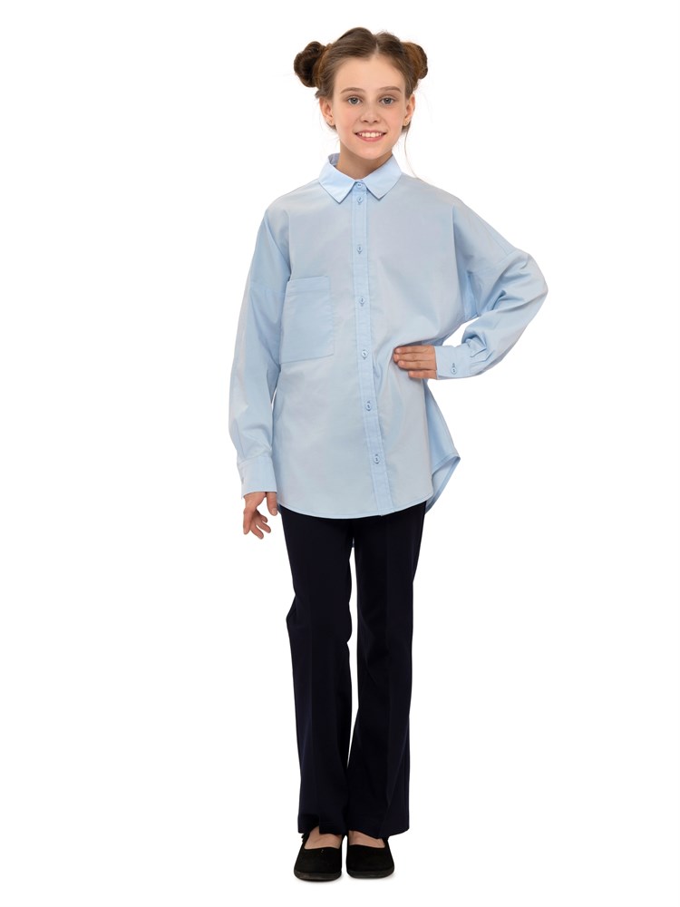 Молодежная блузка оверсайз, с карманом. Свободный крой. Модель напоминает "летучую мышь". Модная и стильная рубашка подойдет как школьная форма для детей, а также как праздничная и нарядная блузка; Состав: Хлопок - 70%, Полиэстер - 27%, Эластан - 3%.