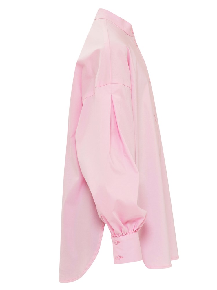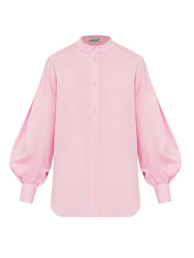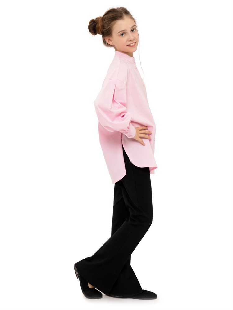 Современная молодежная блузка оверсайз. Свободный крой. Широкие рукава. Воротник стойка. Представленная модель рубашки может использоваться как школьная форма для детей, а также как праздничная нарядная блузка; Состав: Хлопок - 70%, Полиэстер - 27%, Эластан - 3%.
