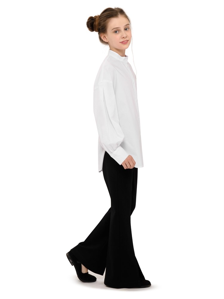 Современная молодежная блузка оверсайз. Свободный крой. Широкие рукава. Воротник стойка. Представленная модель рубашки может использоваться как школьная форма для детей, а также как праздничная нарядная блузка; Состав: Хлопок - 70%, Полиэстер - 27%, Эластан - 3%.