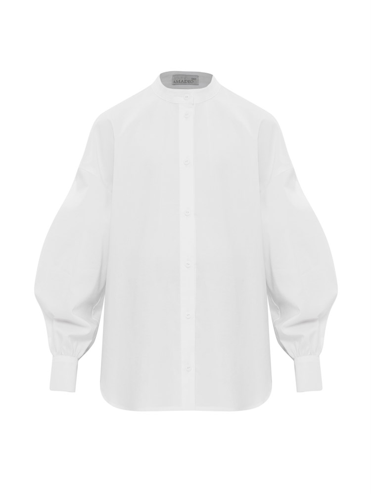 Современная молодежная блузка оверсайз. Свободный крой. Широкие рукава. Воротник стойка. Представленная модель рубашки может использоваться как школьная форма для детей, а также как праздничная нарядная блузка; Состав: Хлопок - 70%, Полиэстер - 27%, Эластан - 3%.