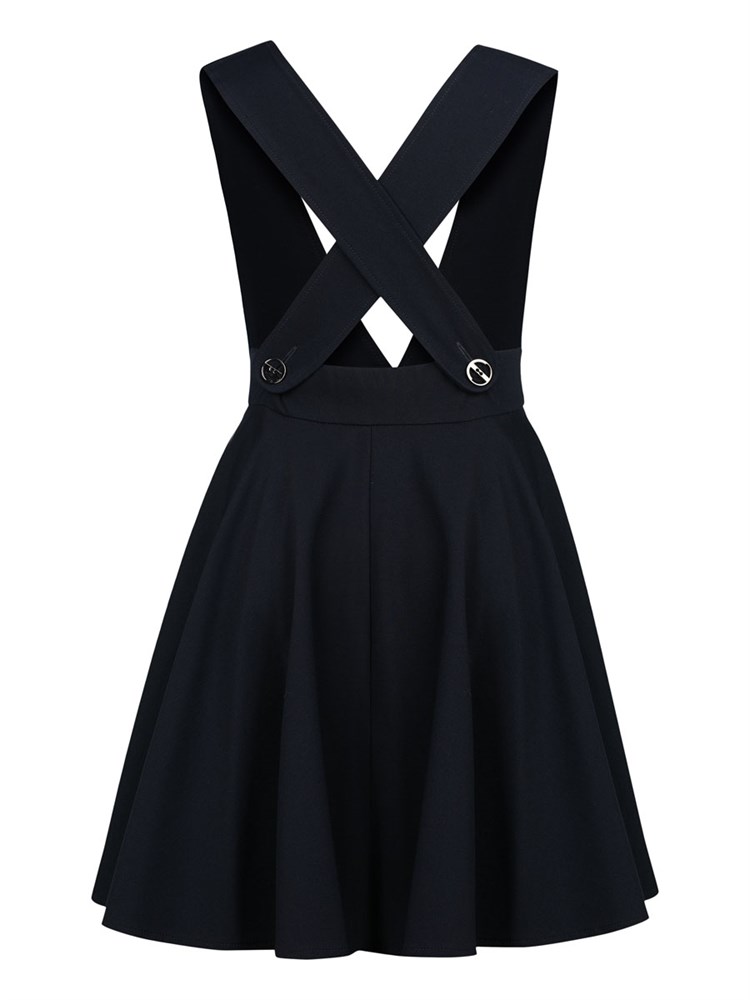 Сарафан для девочки без рукавов, на толстых лямках, перекрещивающихся на спине, юбка-клеш, с декоративной брошью со стразамина поясе; Состав: Вискоза - 60%, Нейлон - 35 %, Эластан - 5%.