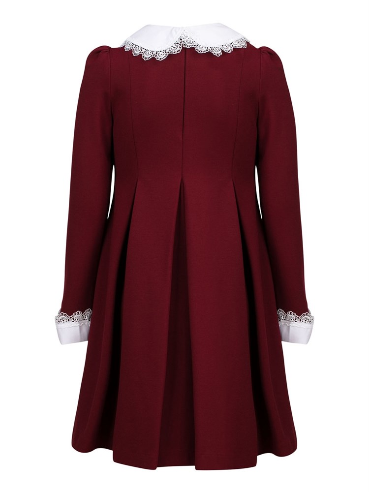 Платье с длинным рукавом А-силуэта с расклешенной юбкой, украшено кружевом, воротник и манжеты отстегиваются; Состав: Вискоза - 60%, Нейлон - 35%, Эластан - 5%