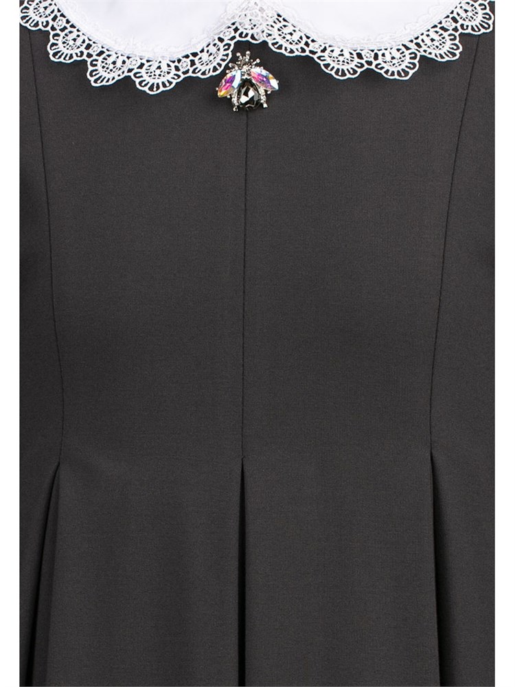 Платье с длинным рукавом А-силуэта с расклешенной юбкой, украшено кружевом, воротник и манжеты отстегиваются; Состав: Вискоза - 60%, Нейлон - 35%, Эластан - 5%