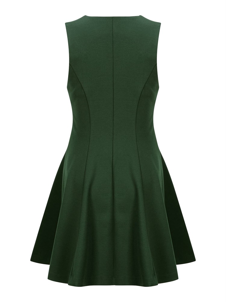 Сарафан для девочки без рукавов, юбка-трапеция, застегивается на серебристую молнию, украшенную декоративным элементом "мушка" со стразами; Состав: Вискоза - 60%, Нейлон - 35 %, Эластан - 5%.