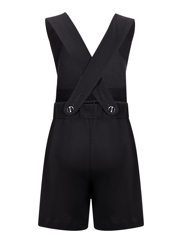 Cарафан с юбкой-шортами, на толстых лямках, перекрещивающихся на спине, с декоративной брошью со стразами на поясе; Состав: Вискоза - 60%, Нейлон - 35 %, Эластан - 5%.