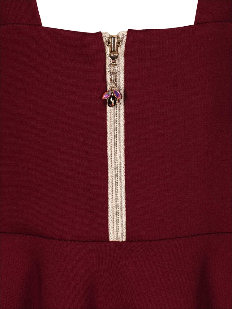 Сарафан с юбкой солнцеклеш. Застегивается спереди на декоративную молнию. Выполнен из трикотажного полотна; Состав: Вискоза - 60%, Нейлон - 35 %, Эластан - 5%.
