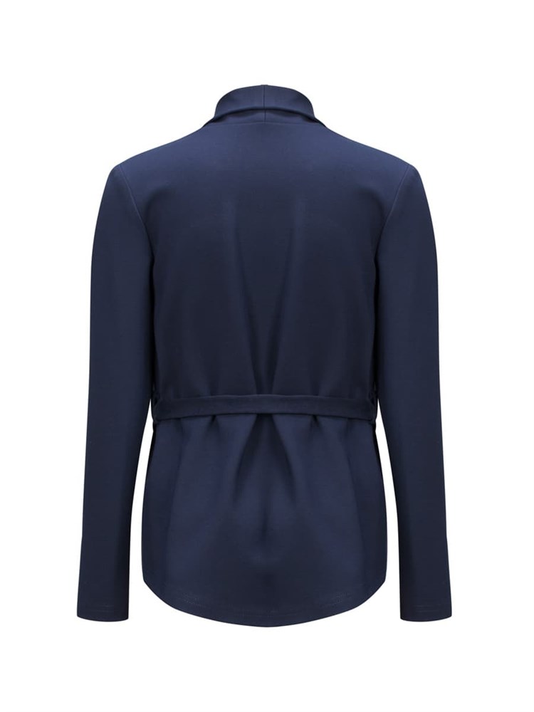 Жакет средней длины, с длинным рукавом, застегивается на съемный пояс из ткани. Без каких-либо декоративных элементов; Состав: Вискоза - 60%, Нейлон - 35%, Эластан - 5%
