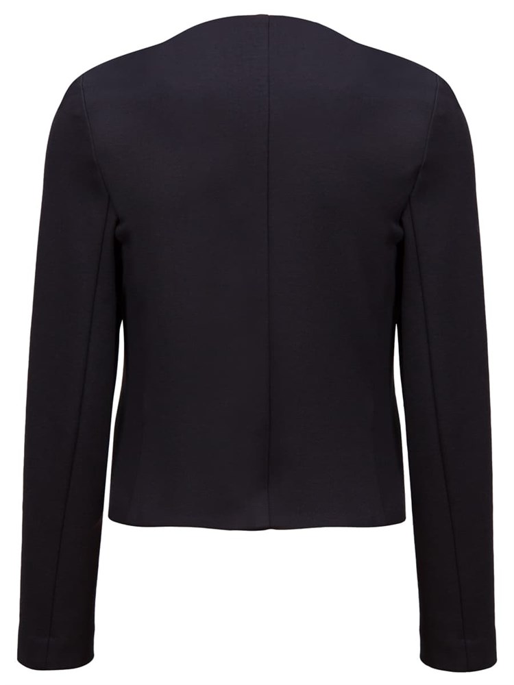 Жакет укороченный, с прорезными карманами, застегивается на декоративную серебристую молнию, украшенную "мушкой" со стразами; Состав: Вискоза - 60%, Нейлон - 35%, Эластан - 5%