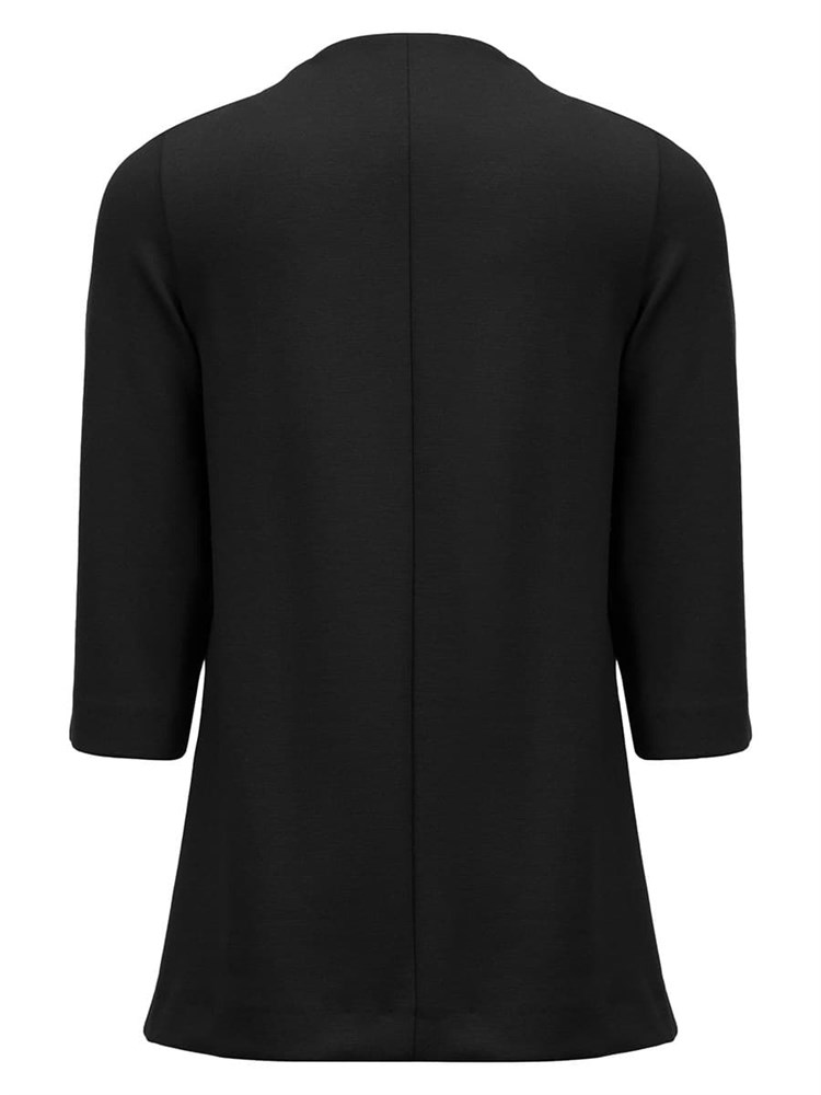 Жакет прямой, с рукавами 3/4, без застежки, с двумя накладными карманами. Без каких-либо декоративных элементов; Состав: Вискоза - 60%, Нейлон - 35%, Эластан - 5%