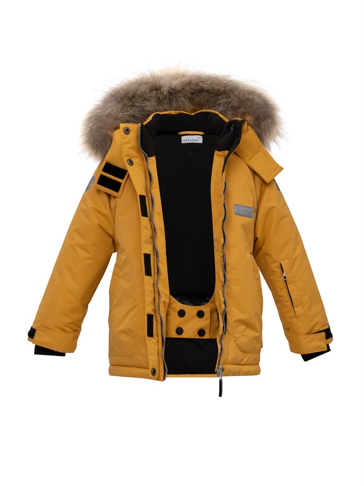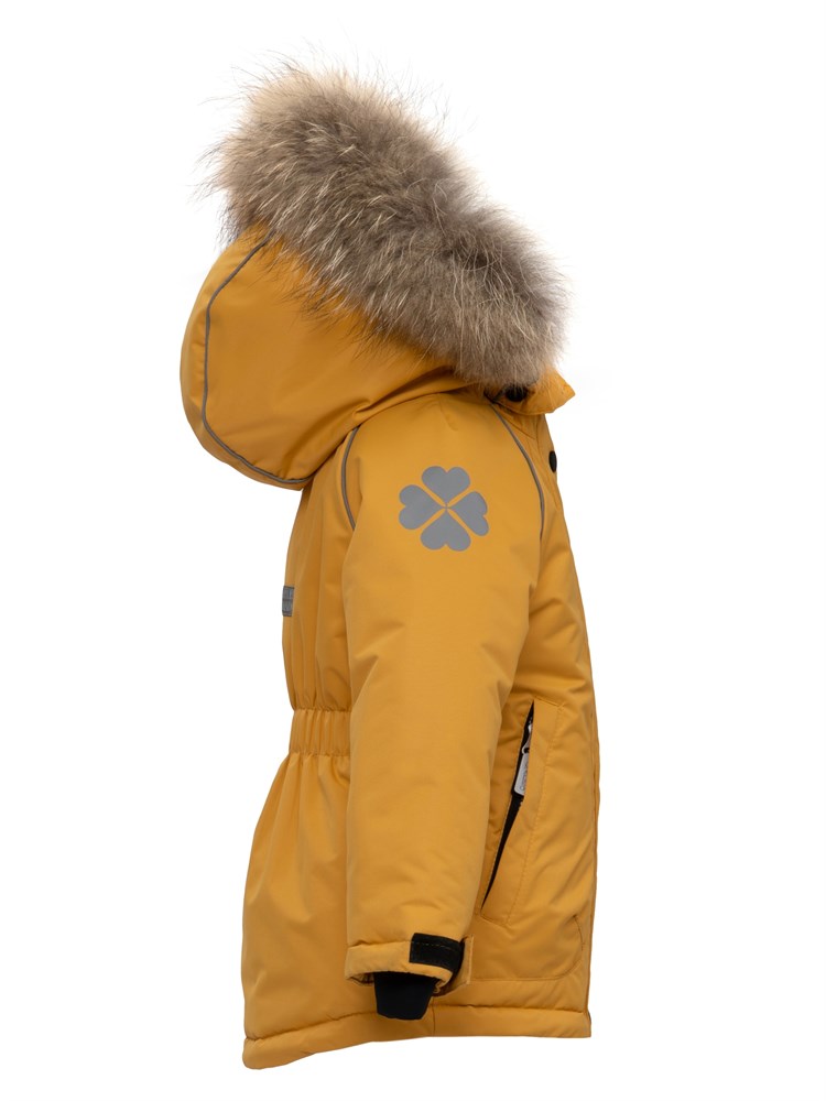 КУРТКА из мембранной ткани с капюшоном. Прекрасный вариант для повседневной носки. На капюшоне натуральная отстегивающаяся опушка, ветрозащита, капюшон отстёгивается на молнии и 2х кнопках, утягивается. Трикотажные манжеты в рукавах, одевающиеся на палец. Светоотражающие элементы на рукавах, светоотражающий кант, светоотражающие пуллеры для безопасности ребенка в темное время суток. Карманы на молнии. Внутренняя снежная юбка, как защита от попадания ветра и снега. Карман на рукаве. Комфортная температура эксплуатации до -20 С. Водонепроницаемость 7000 мм. водного столба. Паропроницаемость 9000 гр/м. кВ/24 часа. Подкладка 1.70% хлопок 30 %полиэстер (ТРИКОТАЖ). 2. 52%вискоза, 48%полиэстер (в рукавах). Утеплитель SHELTER 200г.; Составв: Ткань верха: 100% полиэстер; Утеплитель: 100% полиэстер; Подкладка 1: 70% хлопок; 30% полиэстер; Подкладка 2 : 52% вискоза; 48% полиэстер.