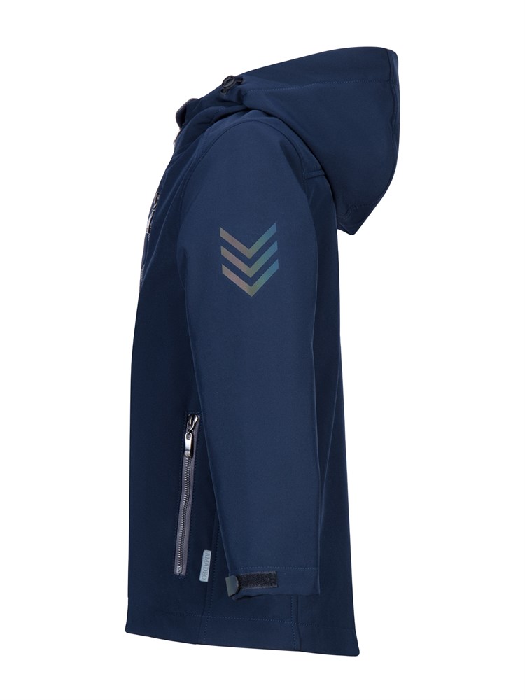 Ветровка выполнена из материала "Софтшелл". Это высокотехнологичная трёхслойная дышащая ткань - мембрана утеплённая флисом. Отлично защищает детей от влаги и ветра. Манжеты рукавов регулируются светоотражающими патами. Светоотражающие элементы на рукавах. Три кармана на молнии. Капюшон и низ куртки регулируемые, можно утянуть. Универсальный вариант для прогулок, активных игр и повседневного использования. Температурный режим от 0 до +18 градусов; Состав: 95% полиэстер, 5% эластан