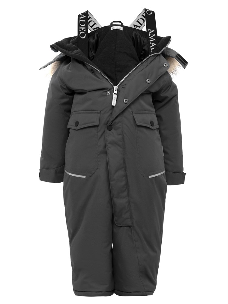 Комбинезон из мембранной ткани. Основные швы проклеены. Отлично защищает от влаги и ветра. Ветрозащита в капюшоне. Капюшон отстёгивается на молнии и 2-х кнопках, утягивается. Трикотажные манжеты в рукавах. Ширина брючин и манжетов рукавов регулируется контактной лентой. Снежные гетры в брючинах. Для удобства ношения в помещении предусмотрены внутренние лямки. Светоотражающие элементы на рукавах и брючинах, для безопасности ребёнка в тёмное время суток. Светоотражающие пуллеры. Регулируемые силиконовые штрипки. Водонепроницаемость 7000 мм. водного столба. Паропроницаемость 9000 гр/м. кв/24 часа. Подкладка 1. 70% хлопок, 30% полиэстер (трикотаж) 2. 52% вискоза, 48% полиэстер (в рукавах и брючинах). Утеплитель SHELTER 200 гр. Натуральная опушка.; Состав: Ткань верха: 100% полиэстер; Утеплитель: 100% полиэстер; Подкладка 1: 70% хлопок; 30% полиэстер; Подкладка 2: 52% вискоза; 48% полиэстер.