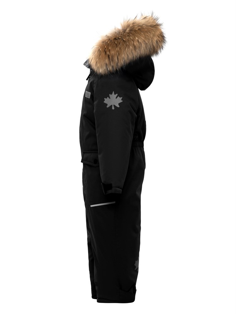 Комбинезон из мембранной ткани. Основные швы проклеены. Отлично защищает от влаги и ветра. Ветрозащита в капюшоне. Капюшон отстёгивается на молнии и 2-х кнопках, утягивается. Трикотажные манжеты в рукавах. Ширина брючин и манжетов рукавов регулируется контактной лентой. Снежные гетры в брючинах. Для удобства ношения в помещении предусмотрены внутренние лямки. Светоотражающие элементы на рукавах и брючинах, для безопасности ребёнка в тёмное время суток. Светоотражающие пуллеры. Регулируемые силиконовые штрипки. Водонепроницаемость 7000 мм. водного столба. Паропроницаемость 9000 гр/м. кв/24 часа. Подкладка 1. 70% хлопок, 30% полиэстер (трикотаж) 2. 52% вискоза, 48% полиэстер (в рукавах и брючинах). Утеплитель SHELTER 200 гр. Натуральная опушка.; Состав: Ткань верха: 100% полиэстер; Утеплитель: 100% полиэстер; Подкладка 1: 70% хлопок; 30% полиэстер; Подкладка 2: 52% вискоза; 48% полиэстер.