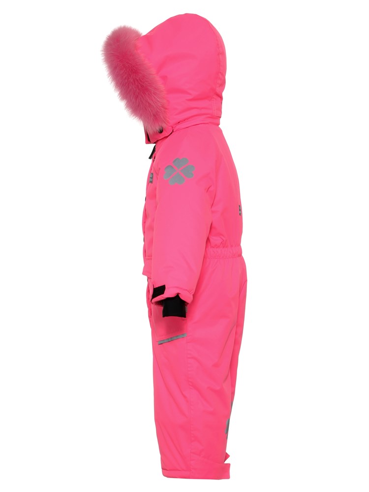 Комбинезон из мембранной ткани. Основные швы проклеены. Отлично защищает от влаги и ветра. Ветрозащита в капюшоне. Капюшон отстёгивается на молнии и 2-х кнопках, утягивается. Трикотажные манжеты в рукавах. Ширина брючин и манжетов рукавов регулируется контактной лентой. Снежные гетры в брючинах. Для удобства ношения в помещении предусмотрены внутренние лямки. Светоотражающие элементы на рукавах и брючинах, для безопасности ребёнка в тёмное время суток. Светоотражающие пуллеры. Регулируемые силиконовые штрипки. Водонепроницаемость 7000 мм. водного столба. Паропроницаемость 9000 гр/м. кв/24 часа. Подкладка 1. 70% хлопок, 30% полиэстер (трикотаж) 2. 52% вискоза, 48% полиэстер (в рукавах и брючинах). Утеплитель SHELTER 200 гр. Натуральная опушка.; Состав: Ткань верха: 100% полиэстер; Утеплитель: 100% полиэстер; Подкладка 1: 70% хлопок; 30% полиэстер; Подкладка 2: 52% вискоза; 48% полиэстер.