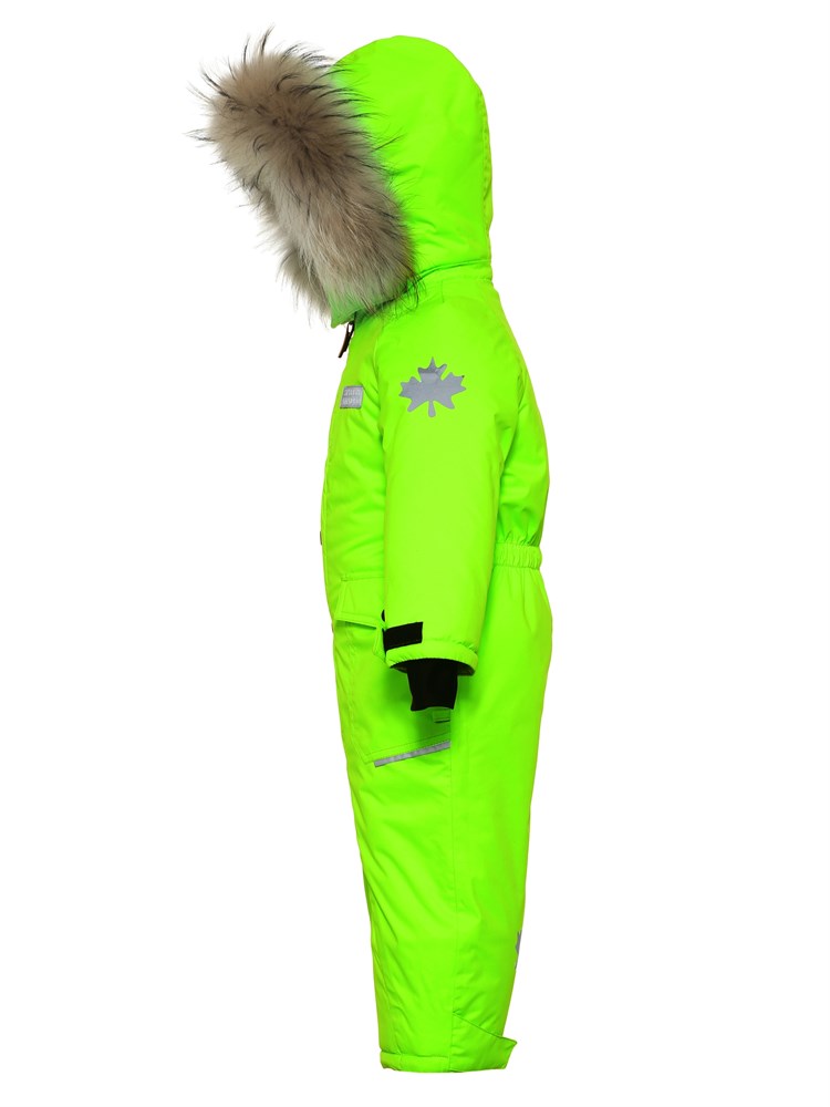 Комбинезон из мембранной ткани. Основные швы проклеены. Отлично защищает от влаги и ветра. Ветрозащита в капюшоне. Капюшон отстёгивается на молнии и 2-х кнопках, утягивается. Трикотажные манжеты в рукавах. Ширина брючин и манжетов рукавов регулируется контактной лентой. Снежные гетры в брючинах. Для удобства ношения в помещении предусмотрены внутренние лямки. Светоотражающие элементы на рукавах и брючинах, для безопасности ребёнка в тёмное время суток. Светоотражающие пуллеры. Регулируемые силиконовые штрипки. Водонепроницаемость 7000 мм. водного столба. Паропроницаемость 9000 гр/м. кв/24 часа. Подкладка 1. 70% хлопок, 30% полиэстер (трикотаж) 2. 52% вискоза, 48% полиэстер (в рукавах и брючинах). Утеплитель SHELTER 200 гр. Натуральная опушка; Состав: Ткань верха: 100% полиэстер; Утеплитель: 100% полиэстер; Подкладка 1: 70% хлопок; 30% полиэстер; Подкладка 2: 52% вискоза; 48% полиэстер.