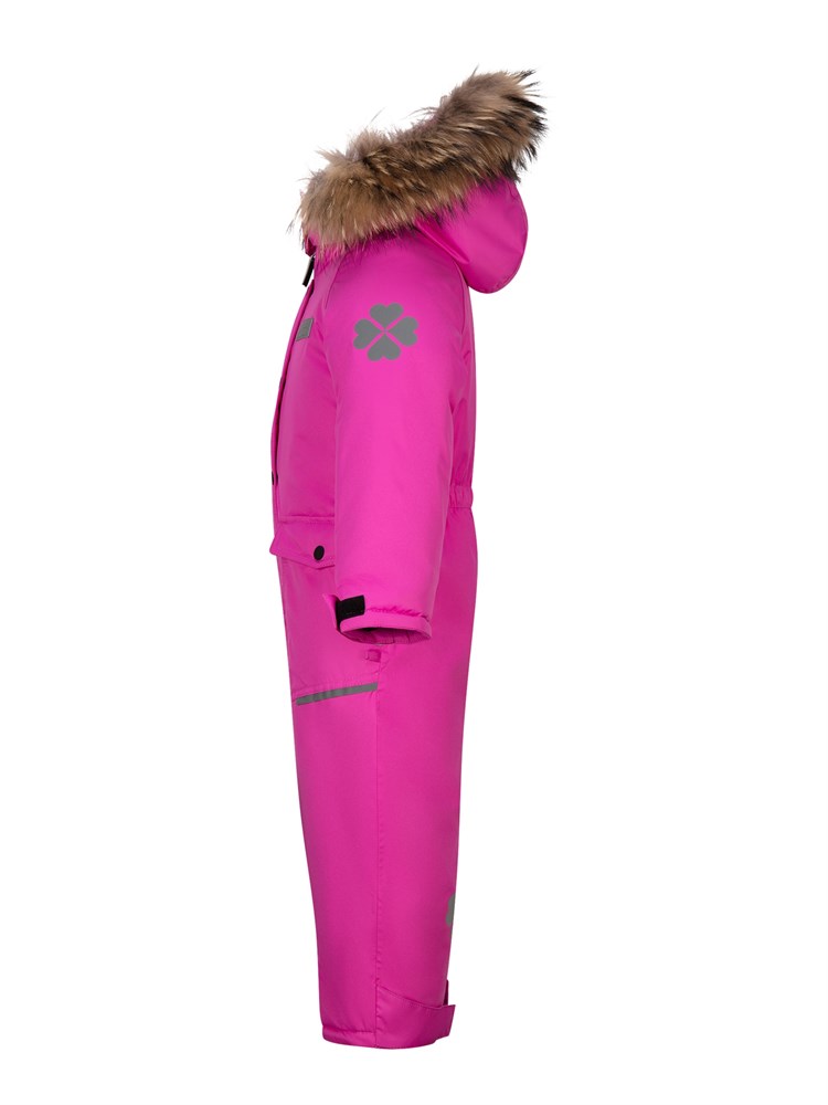 Комбинезон из мембранной ткани. Основные швы проклеены. Отлично защищает от влаги и ветра. Ветрозащита в капюшоне. Капюшон отстёгивается на молнии и 2-х кнопках, утягивается. Трикотажные манжеты в рукавах. Ширина брючин и манжетов рукавов регулируется контактной лентой. Снежные гетры в брючинах. Для удобства ношения в помещении предусмотрены внутренние лямки. Светоотражающие элементы на рукавах и брючинах, для безопасности ребёнка в тёмное время суток. Светоотражающие пуллеры. Регулируемые силиконовые штрипки. Водонепроницаемость 7000 мм. водного столба. Паропроницаемость 9000 гр/м. кв/24 часа. Подкладка 1. 70% хлопок, 30% полиэстер (трикотаж) 2. 52% вискоза, 48% полиэстер (в рукавах и брючинах). Утеплитель SHELTER 200 гр. Натуральная опушка; Состав: Ткань верха: 100% полиэстер; Утеплитель: 100% полиэстер; Подкладка 1: 70% хлопок; 30% полиэстер; Подкладка 2: 52% вискоза; 48% полиэстер.