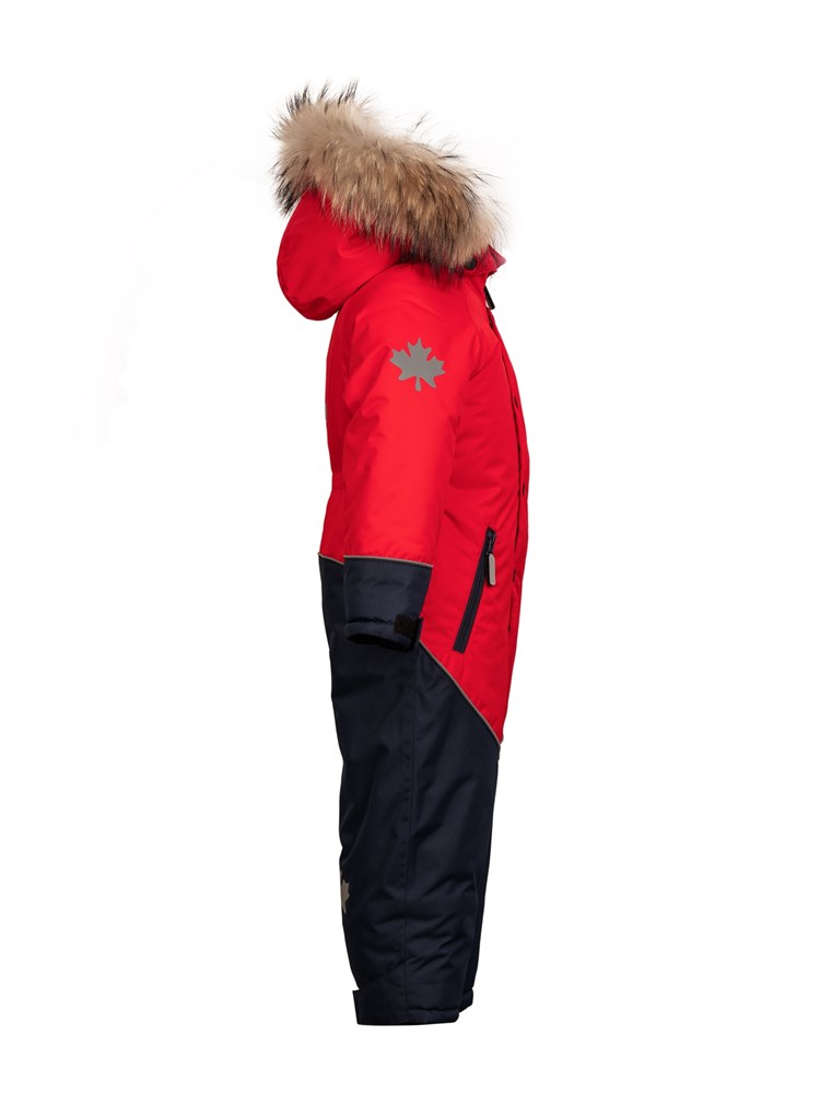 Комбинезон из мембранной ткани. Основные швы проклеены. Отлично защищает от влаги и ветра. Ветрозащита в капюшоне. Капюшон отстёгивается на молнии и 2-х кнопках, утягивается. Трикотажные манжеты в рукавах. Ширина брючин и манжетов рукавов регулируется контактной лентой. Снежные гетры в брючинах. Для удобства ношения в помещении предусмотрены внутренние лямки. Светоотражающие элементы на рукавах и брючинах, для безопасности ребёнка в тёмное время суток. Светоотражающие пуллеры. Регулируемые силиконовые штрипки. Водонепроницаемость 7000 мм. водного столба. Паропроницаемость 9000 гр/м. кв/24 часа. Подкладка 1. 70% хлопок, 30% полиэстер (трикотаж) 2. 52% вискоза, 48% полиэстер (в рукавах и брючинах). Утеплитель SHELTER 200 гр. Натуральная опушка; Состав: Ткань верха: 100% полиэстер; Утеплитель: 100% полиэстер; Подкладка 1: 70% хлопок; 30% полиэстер; Подкладка 2: 52% вискоза; 48% полиэстер.