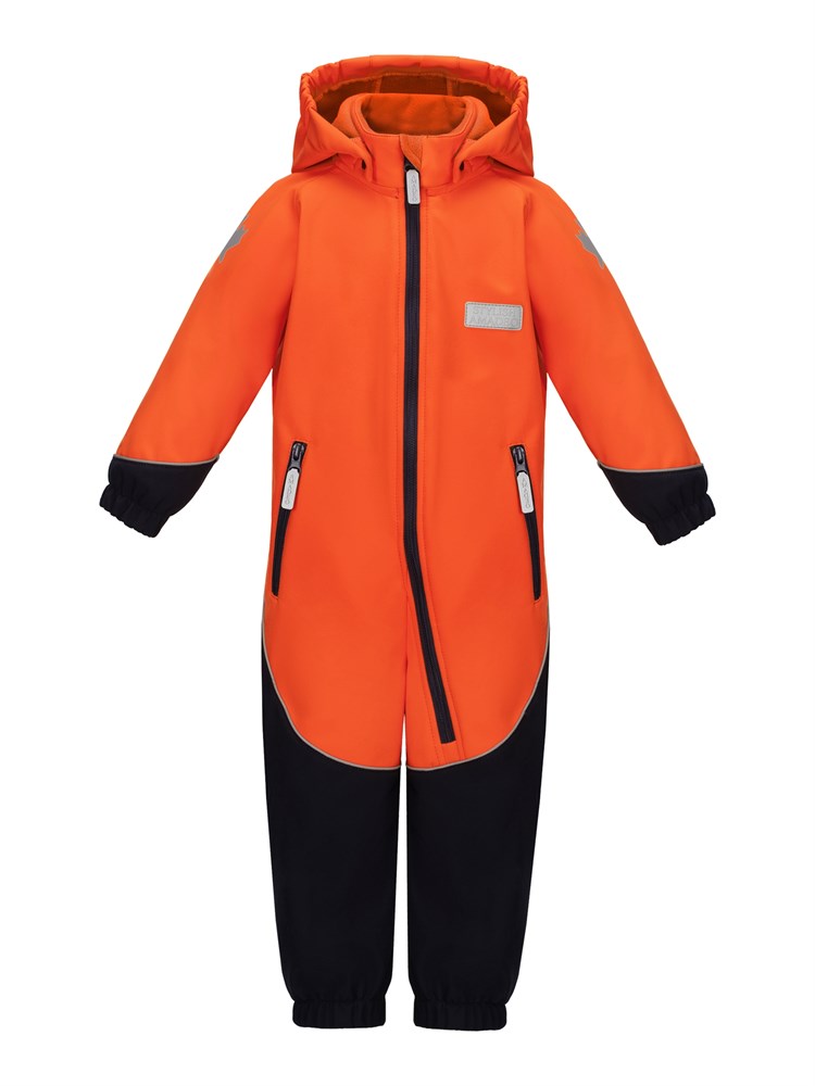 Комбинезон выполнен из материала «Софтшелл». Это высокотехнологичная трёхслойная дышащая ткань – мембрана утеплённая флисом. Отлично защищает от влаги и ветра. Светоотражающие элементы. Манжеты и пояс на резинке. Регулируемые штрипки. Для удобства ношения в помещении,предусмотрены внутренние лямки.Универсальный вариант для прогулок, активных игр и повседневного использования. Температурный режим от +3 до +18 градусов; Состав: Полиэстер - 95%, Эластан - 5%