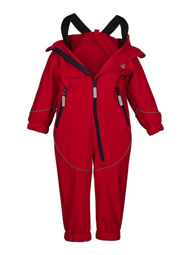 Комбинезон выполнен из материала «Софтшелл». Это высокотехнологичная трёхслойная дышащая ткань – мембрана утеплённая флисом. Отлично защищает от влаги и ветра. Светоотражающие элементы. Манжеты и пояс на резинке. Регулируемые штрипки. Для удобства ношения в помещении,предусмотрены внутренние лямки.Универсальный вариант для прогулок, активных игр и повседневного использования. Температурный режим от +3 до +18 градусов; Состав: Полиэстер - 95%, Эластан - 5%