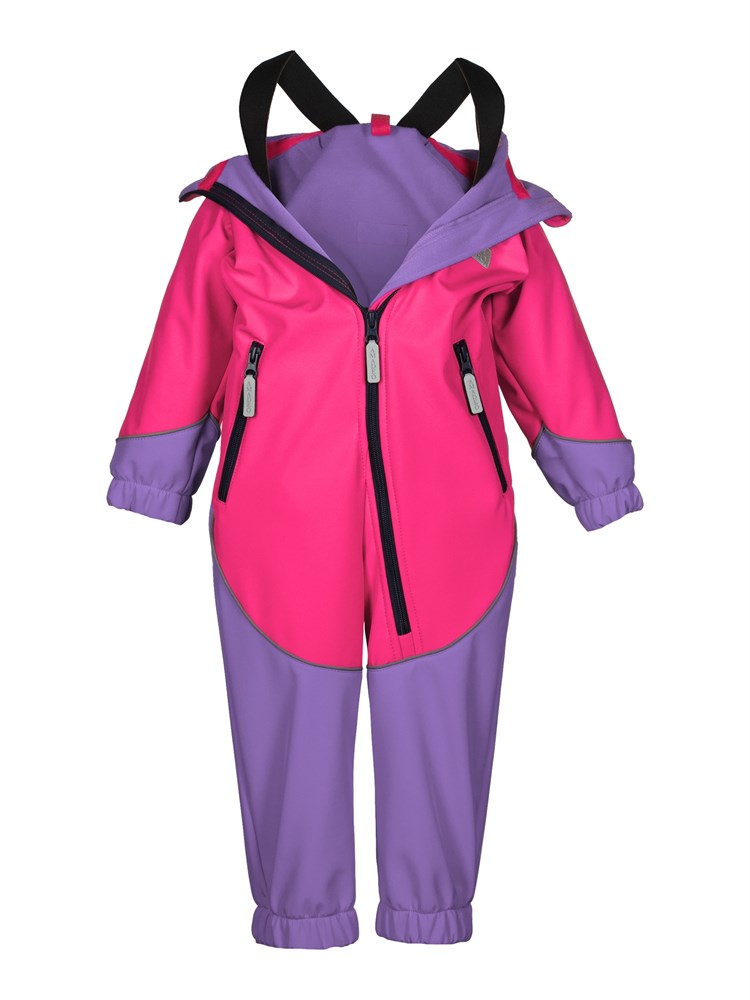 Комбинезон выполнен из материала «Софтшелл». Это высокотехнологичная трёхслойная дышащая ткань – мембрана утеплённая флисом. Отлично защищает от влаги и ветра. Светоотражающие элементы. Манжеты и пояс на резинке. Регулируемые штрипки. Для удобства ношения в помещении,предусмотрены внутренние лямки.Универсальный вариант для прогулок, активных игр и повседневного использования. Температурный режим от +3 до +18 градусов; Состав: Полиэстер - 95%, Эластан - 5%