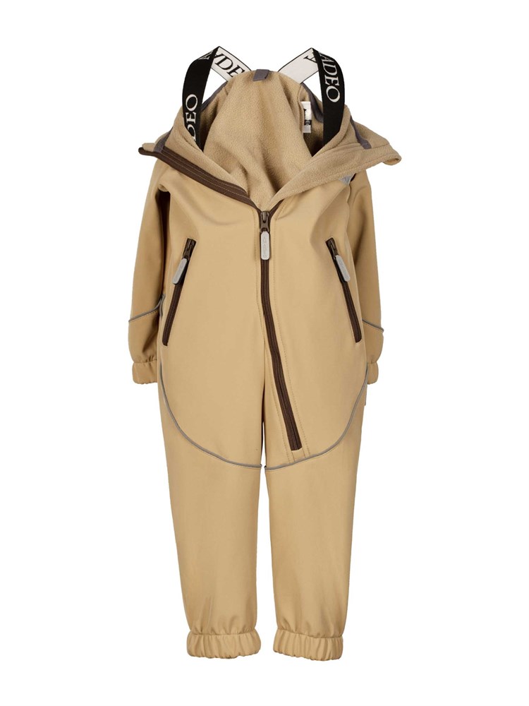 Комбинезон выполнен из материала «Софтшелл». Это высокотехнологичная трёхслойная дышащая ткань – мембрана утеплённая флисом. Отлично защищает от влаги и ветра. Светоотражающие элементы. Манжеты и пояс на резинке. Регулируемые штрипки. Для удобства ношения в помещении,предусмотрены внутренние лямки.Универсальный вариант для прогулок, активных игр и повседневного использования. Температурный режим от +3 до +18 градусов; Состав: Полиэстер - 95%, Эластан - 5%