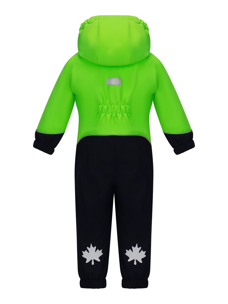 Комбинезон выполнен из материала «Софтшелл». Это высокотехнологичная трёхслойная дышащая ткань – мембрана утеплённая флисом. Отлично защищает от влаги и ветра. Светоотражающие элементы. Манжеты и пояс на резинке. Регулируемые штрипки. Для удобства ношения в помещении,предусмотрены внутренние лямки.Универсальный вариант для прогулок, активных игр и повседневного использования. Температурный режим от +3 до +18 градусов; Состав: Полиэстер - 95%, Эластан - 5%