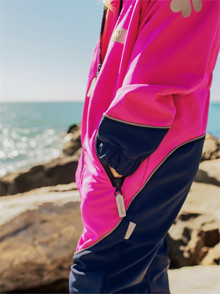 Комбинезон выполнен из материала «Софтшелл». Это высокотехнологичная трёхслойная дышащая ткань – мембрана утеплённая флисом. Отлично защищает от влаги и ветра. Светоотражающие элементы. Манжеты и пояс на резинке. Регулируемые штрипки. Для удобства ношения в помещении,предусмотрены внутренние лямки.Универсальный вариант для прогулок, активных игр и повседневного использования. Температурный режим от +3 до +18 градусов; Состав: Полиэстер - 95%, Эластан - 5%
