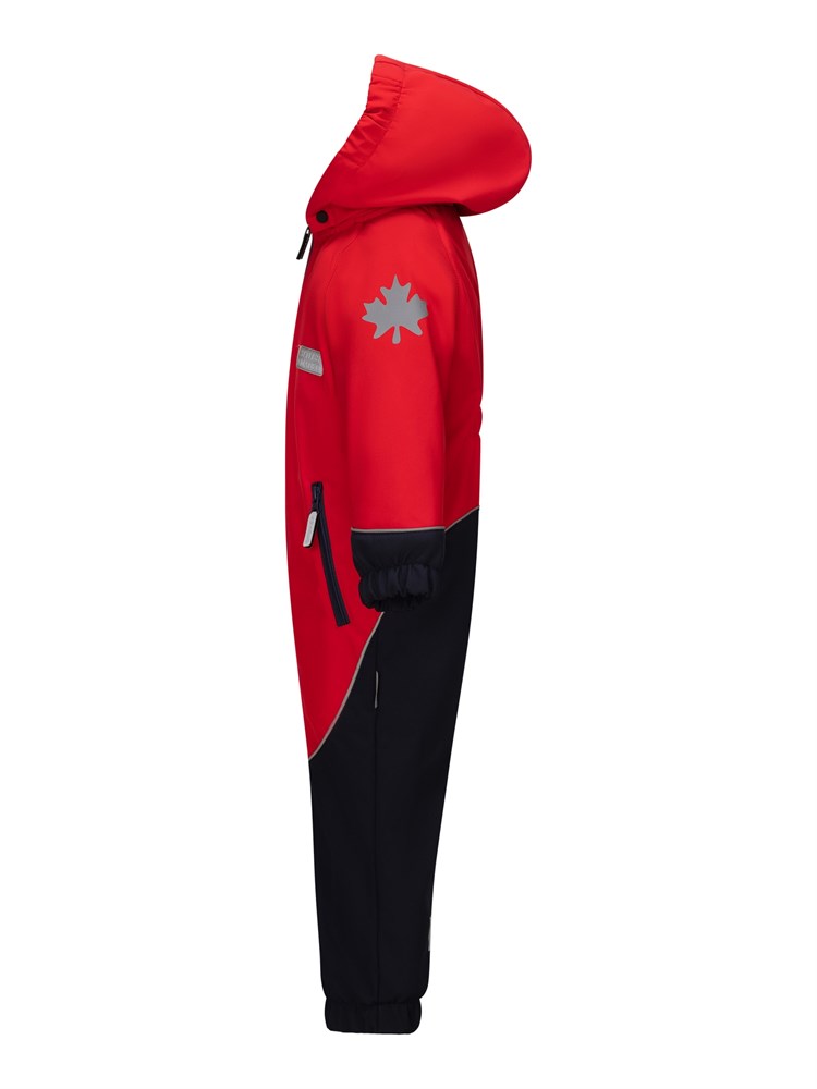 Комбинезон выполнен из материала «Софтшелл». Это высокотехнологичная трёхслойная дышащая ткань – мембрана утеплённая флисом. Отлично защищает от влаги и ветра. Светоотражающие элементы. Манжеты и пояс на резинке. Регулируемые штрипки. Для удобства ношения в помещении,предусмотрены внутренние лямки.Универсальный вариант для прогулок, активных игр и повседневного использования. Температурный режим от +3 до +18 градусов; Состав: Полиэстер - 95%, Эластан - 5%