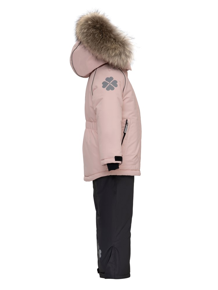 КОМПЛЕКТ: куртка + полукомбинезон. Прекрасный вариант для повседневной носки. КУРТКА из мембранной ткани с капюшоном, на капюшоне натуральная отстегивающаяся опушка, ветрозащита, капюшон отстёгивается на молнии и 2х кнопках, утягивается. Трикотажные манжеты в рукавах, одевающиеся на палец. Светоотражающие элементы на рукавах, светоотражающий кант, светоотражающие пуллеры для безопасности ребенка в темное время суток. Карманы на молнии. Внутренняя снежная юбка, как защита от попадания ветра и снега. ПОЛУКОМБИНЕЗОН С РЕГУЛИРУЕМЫМИ ЛЯМКАМИ, основные швы проклеены. Снегозащитные манжеты и силиконовые штрипки (длина меняется за счёт пуговиц) для фиксации брючины на обуви. Усиленная ткань В МЕСТАХ ПОВЫШЕННОГО ТРЕНИЯ. Комфортная температура эксплуатации до -20С. Водонепроницаемость 7000 мм. водного столба. Паропроницаемость 9000 гр/м. кВ/24 часа. Подкладка 1. 70% хлопок. 30% полиэстер (ТРИКОТАЖ); 2. 52% вискоза, 48% полиэстер (в рукавах и штанинах). Утеплитель SHELTER 200 гр. в куртке и 150 гр. в полукомбинезоне.