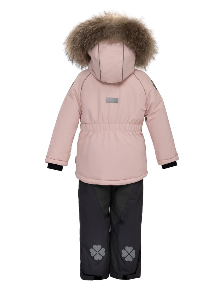 КОМПЛЕКТ: куртка + полукомбинезон. Прекрасный вариант для повседневной носки. КУРТКА из мембранной ткани с капюшоном, на капюшоне натуральная отстегивающаяся опушка, ветрозащита, капюшон отстёгивается на молнии и 2х кнопках, утягивается. Трикотажные манжеты в рукавах, одевающиеся на палец. Светоотражающие элементы на рукавах, светоотражающий кант, светоотражающие пуллеры для безопасности ребенка в темное время суток. Карманы на молнии. Внутренняя снежная юбка, как защита от попадания ветра и снега. ПОЛУКОМБИНЕЗОН С РЕГУЛИРУЕМЫМИ ЛЯМКАМИ, основные швы проклеены. Снегозащитные манжеты и силиконовые штрипки (длина меняется за счёт пуговиц) для фиксации брючины на обуви. Усиленная ткань В МЕСТАХ ПОВЫШЕННОГО ТРЕНИЯ. Комфортная температура эксплуатации до -20С. Водонепроницаемость 7000 мм. водного столба. Паропроницаемость 9000 гр/м. кВ/24 часа. Подкладка 1. 70% хлопок. 30% полиэстер (ТРИКОТАЖ); 2. 52% вискоза, 48% полиэстер (в рукавах и штанинах). Утеплитель SHELTER 200 гр. в куртке и 150 гр. в полукомбинезоне.