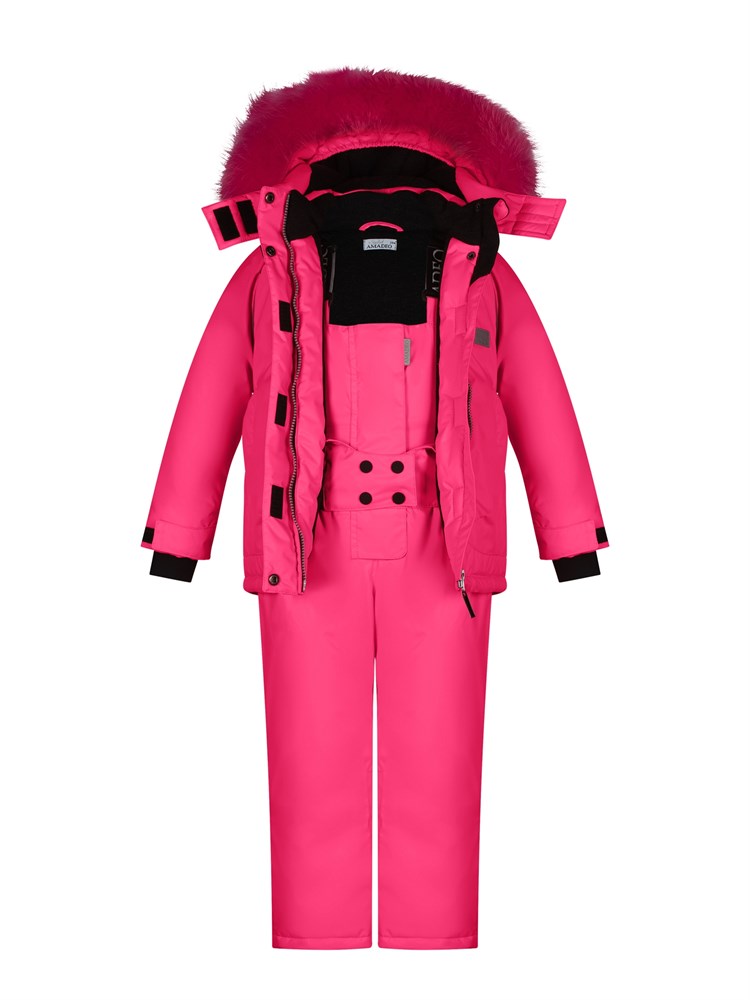 КОМПЛЕКТ: куртка + полукомбинезон. Прекрасный вариант для повседневной носки. КУРТКА из мембранной ткани с капюшоном, на капюшоне натуральная отстегивающаяся опушка, ветрозащита, капюшон отстёгивается на молнии и 2х кнопках, утягивается. Трикотажные манжеты в рукавах, одевающиеся на палец. Светоотражающие элементы на рукавах, светоотражающий кант, светоотражающие пуллеры для безопасности ребенка в темное время суток. Карманы на молнии. Внутренняя снежная юбка, как защита от попадания ветра и снега. ПОЛУКОМБИНЕЗОН С РЕГУЛИРУЕМЫМИ ЛЯМКАМИ, основные швы проклеены. Снегозащитные манжеты и силиконовые штрипки (длина меняется за счёт пуговиц) для фиксации брючины на обуви. Усиленная ткань В МЕСТАХ ПОВЫШЕННОГО ТРЕНИЯ. Комфортная температура эксплуатации до -20С. Водонепроницаемость 7000 мм. водного столба. Паропроницаемость 9000 гр/м. кВ/24 часа. Подкладка 1. 70% хлопок. 30% полиэстер (ТРИКОТАЖ); 2. 52% вискоза, 48% полиэстер (в рукавах и штанинах). Утеплитель SHELTER 200 гр. в куртке и 150 гр. в полукомбинезоне.