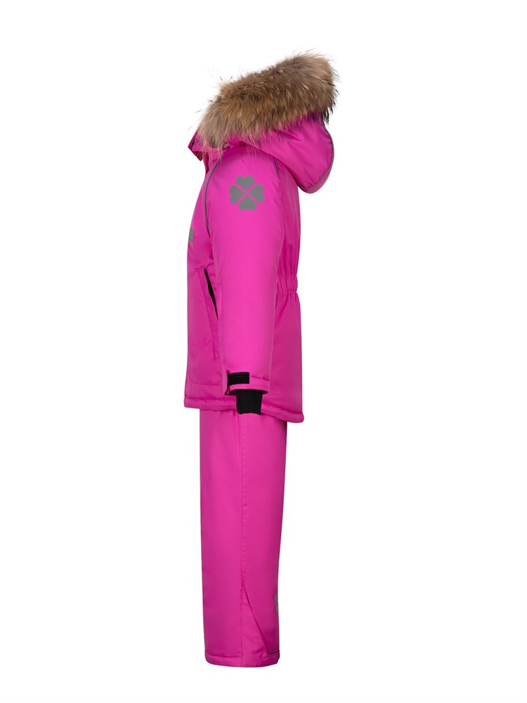 КОМПЛЕКТ: куртка + полукомбинезон. Прекрасный вариант для повседневной носки. КУРТКА из мембранной ткани с капюшоном, на капюшоне натуральная отстегивающаяся опушка, ветрозащита, капюшон отстёгивается на молнии и 2х кнопках, утягивается. Трикотажные манжеты в рукавах, одевающиеся на палец. Светоотражающие элементы на рукавах, светоотражающий кант, светоотражающие пуллеры для безопасности ребенка в темное время суток. Карманы на молнии. Внутренняя снежная юбка, как защита от попадания ветра и снега. ПОЛУКОМБИНЕЗОН С РЕГУЛИРУЕМЫМИ ЛЯМКАМИ, основные швы проклеены. Снегозащитные манжеты и силиконовые штрипки (длина меняется за счёт пуговиц) для фиксации брючины на обуви. Усиленная ткань В МЕСТАХ ПОВЫШЕННОГО ТРЕНИЯ. Комфортная температура эксплуатации до -20С. Водонепроницаемость 7000 мм. водного столба. Паропроницаемость 9000 гр/м. кВ/24 часа. Подкладка 1. 70% хлопок. 30% полиэстер (ТРИКОТАЖ); 2. 52% вискоза, 48% полиэстер (в рукавах и штанинах). Утеплитель SHELTER 200 гр. в куртке и 150 гр. в полукомбинезоне.