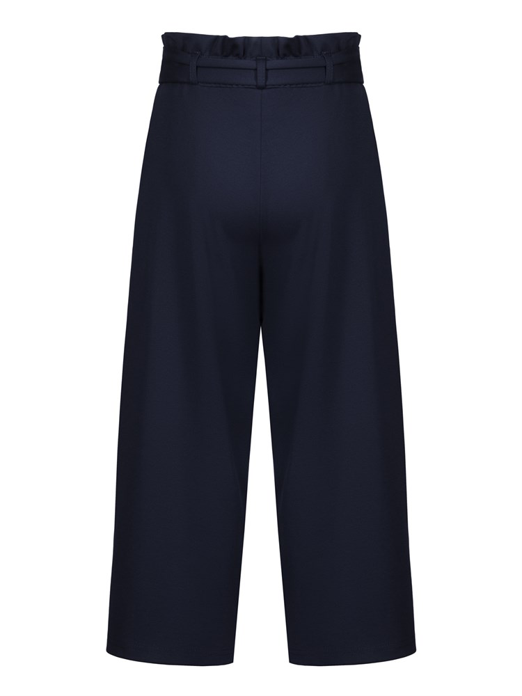 Трикотажные брюки-кюлоты, длина 7/8. С карманами, с поясом на резинке, без застежки. Без каких-либо декоратиных элементов; Состав: Вискоза - 60%, Нейлон - 35 %, Эластан - 5%.