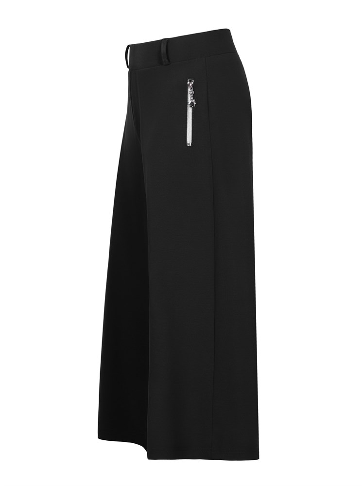 Трикотажные брюки-кюлоты, длина 7/8. Карманы с декоративными молниями.Без застежки. Без каких-либо декоратиных элементов.; Состав: Вискоза - 60%, Нейлон - 35 %, Эластан - 5%.