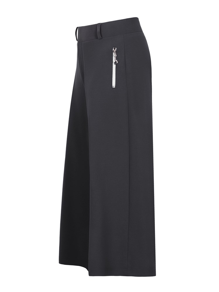 Трикотажные брюки-кюлоты, длина 7/8. Карманы с декоративными молниями.Без застежки. Без каких-либо декоратиных элементов.; Состав: Вискоза - 60%, Нейлон - 35 %, Эластан - 5%.
