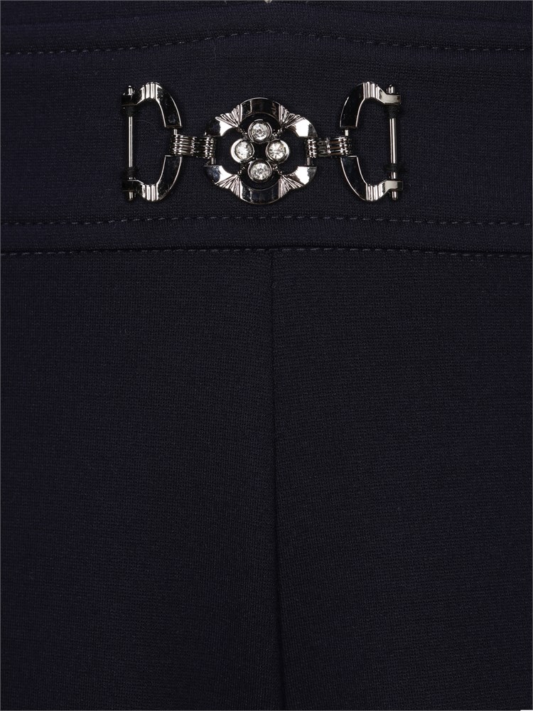 Комбинезон без рукавов, с расклешенными брюками, на толстых лямках, перекрещивающихся на спине, с декоративной брошью со стразами на поясе; Состав: Вискоза - 60%, Нейлон - 35 %, Эластан - 5%.