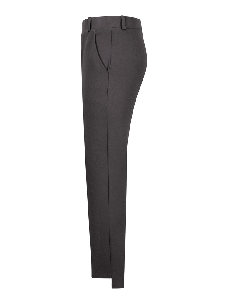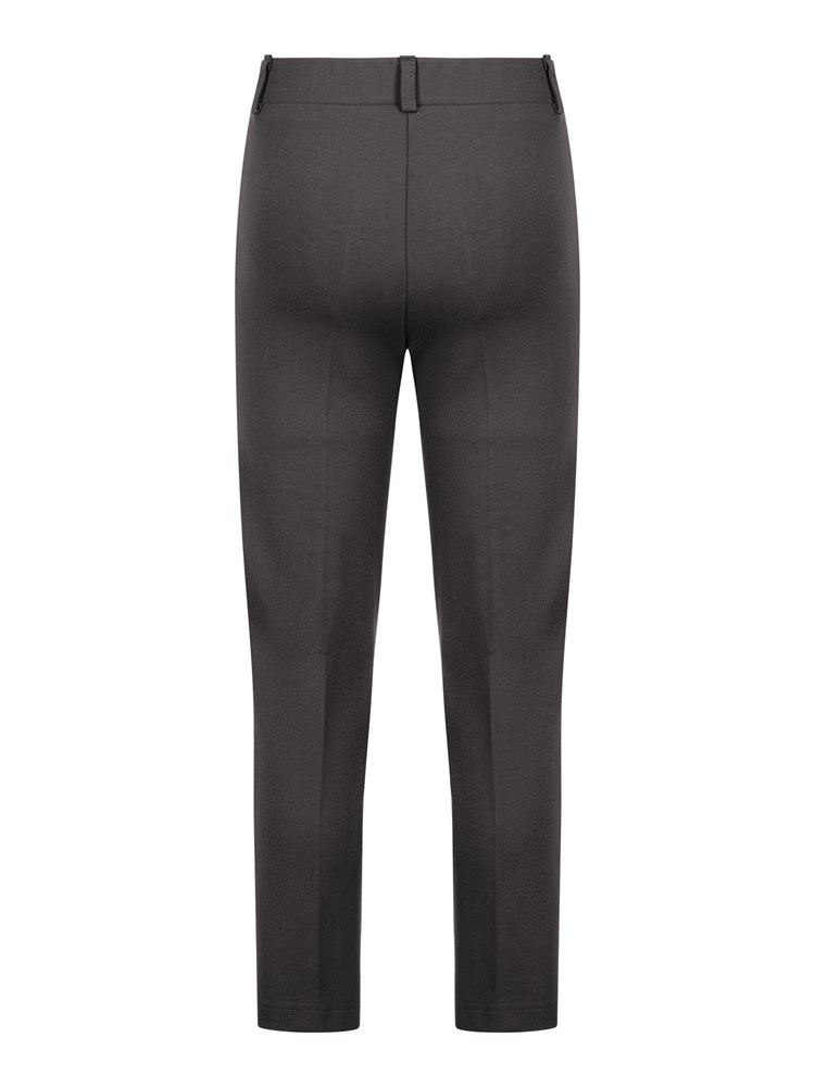 Брюки выполнены из плотного трикотажа, с карманами. Без застежки. Пояс на резинке. Низ брюк спереди короче, чем сзади. По бокам брючин небольшие разрезы с обоих сторон; Состав: Вискоза - 60%, Нейлон - 35 %, Эластан - 5%.