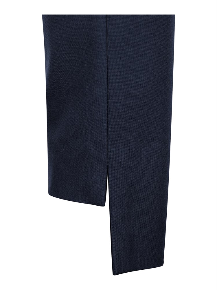 Брюки выполнены из плотного трикотажа, с карманами. Без застежки. Пояс на резинке. Низ брюк спереди короче, чем сзади. По бокам брючин небольшие разрезы с обоих сторон; Состав: Вискоза - 60%, Нейлон - 35 %, Эластан - 5%.